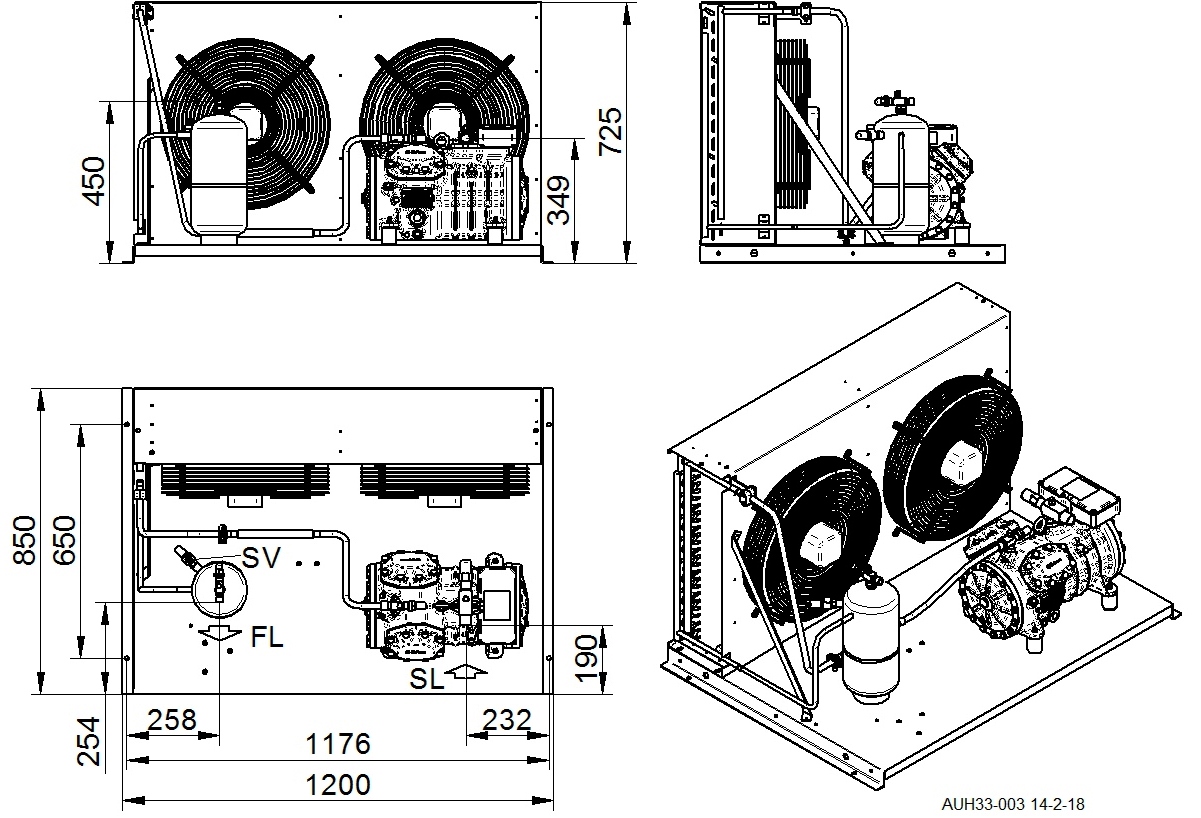 | Вентиляторы: эл. мощность @50Hz | 2×165 | n° × [W] |